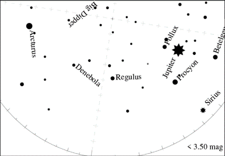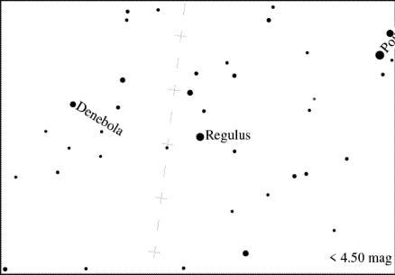 - Es wird dann der zum gewählten Sternbild Löwe zugehörige Himmelsausschnittes angezeigt. Darunter erscheinen kleinere Grafiken des Himmelsausschnitts mit jeweils unterschiedlich vielen Sternen. Man wählt die Karte aus, die der Anzahl der sichtbaren Sterne am jeweiligen Standort am nächsten kommt.