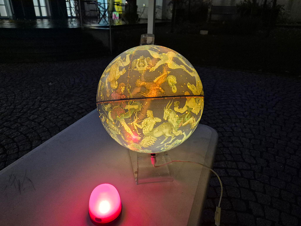 Wir konnten zahlreiche Flyer der AG Orion verteilen und viele anregende Gespräche führen. Neben unseren eigenen Materialien lagen auch Informationen der Initiative „Paten der Nacht“ aus. Ein kleines Demonstrationsset zur Lichtverschmutzung regte zum Nachdenken an und unser Sternglobus erwies sich als anschauliches Hilfsmittel zur Orientierung am Nachthimmel.